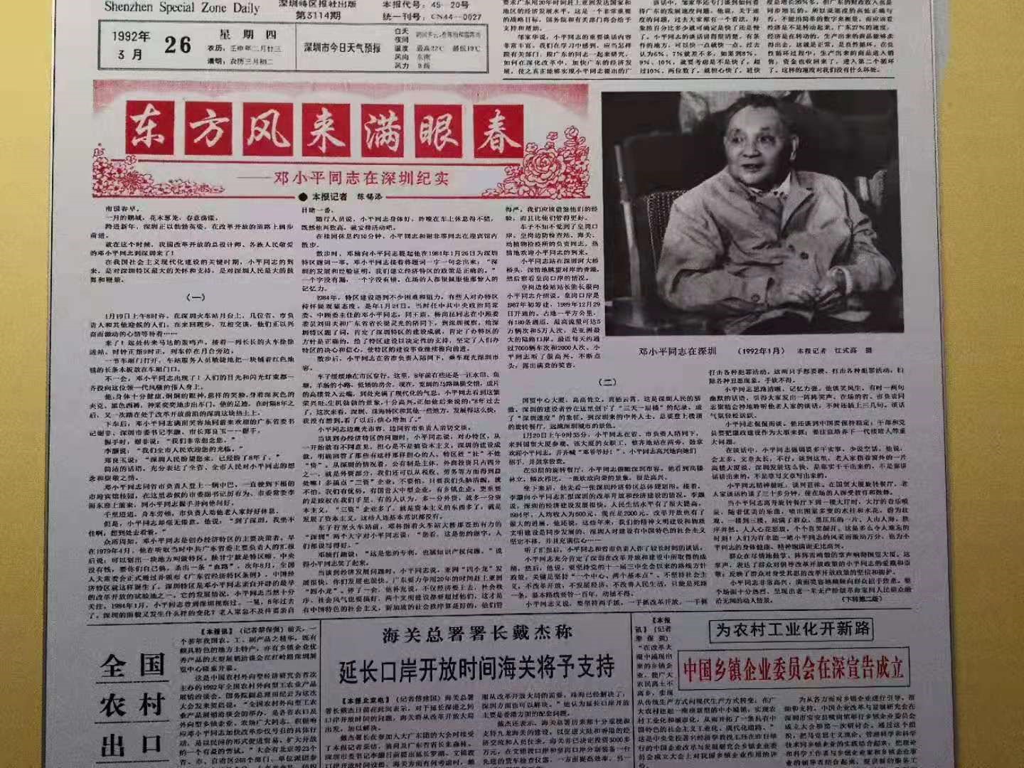正是小平同志的到来,使深圳进一步涌起改革开放的春潮。小平同志在这里发表的许多重要谈话,对深圳的改革开放和建设,对整个社会主义现代化建设事业,都有着重大而深远的意义。