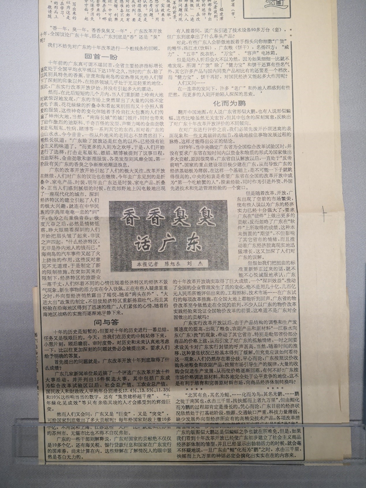 广东改革开放后,由于产品结构的调整和生产发展速度的提高,出现了粮食、农副产品和原材料向广东流动的现象,毗邻省份部分商品的价格上涨,引发了人们对广东的反对和抵触情绪。1989年,专题系列报道《香香臭臭话广东》将广东改革开放后的真实情况告诉了全国广大读者,帮助和引导人们正确看待和分析形势,进一步提高了人们坚持改革开放的意识,引起了强烈的社会反响和关注。