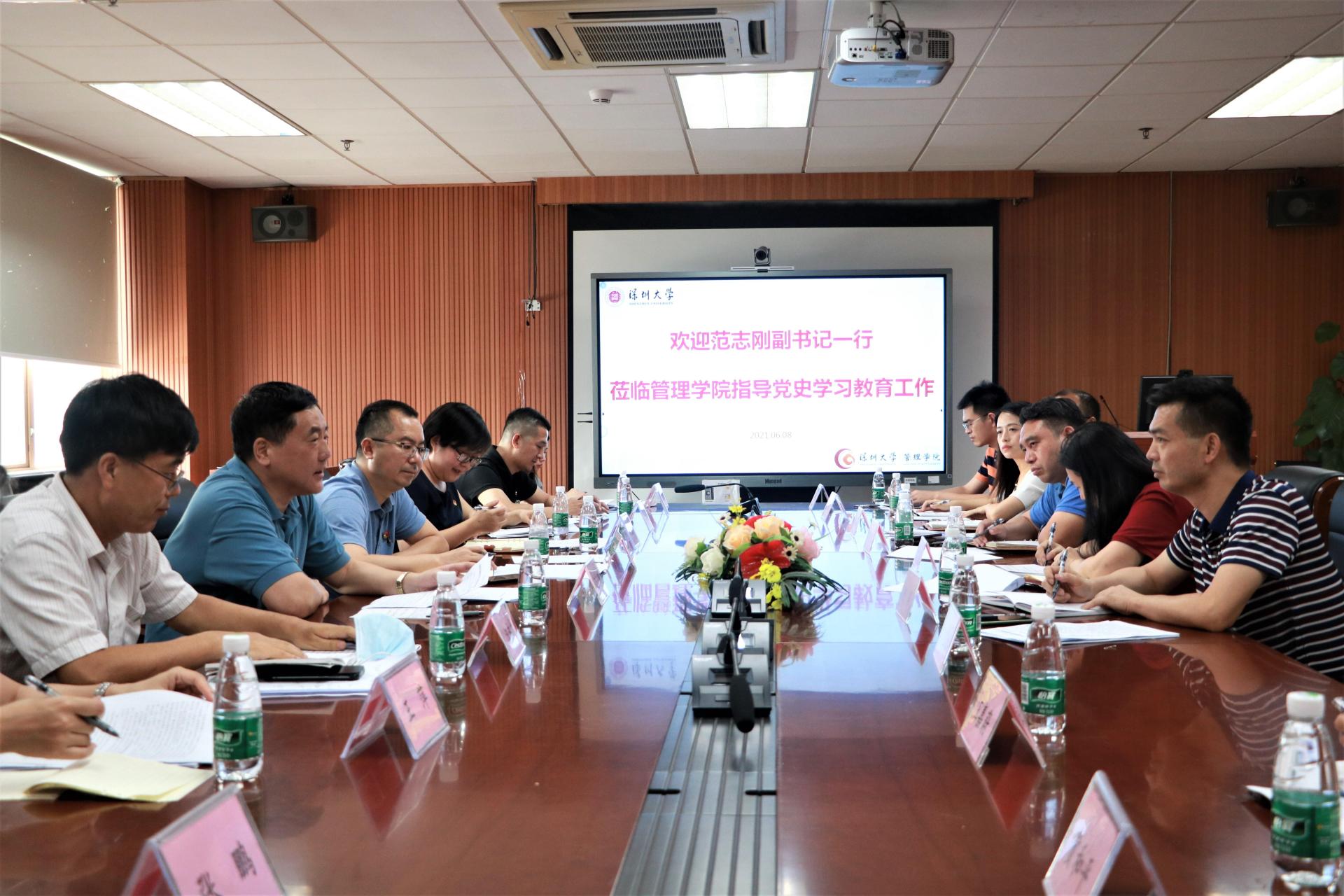6月8日下午,校党委副书记、深圳大学党史学习教育领导小组常务副组长范志刚副书记对管理学院党委党史学习教育开展情况进行调研指导。党委组织部、统战部部长戴纪锋、党委宣传部部长汪永成,管理学院领导班子成员、党支部书记、组织员等参加座谈。