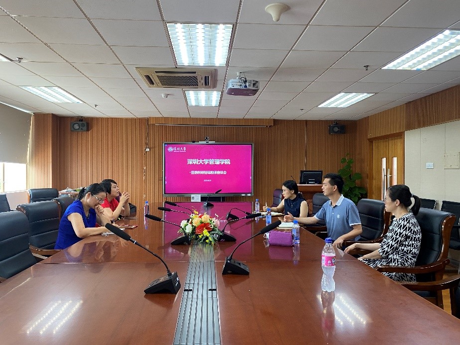 6月25日,管理学院教工第一党支部部分教师在文科楼1400会议室组织召开了“市场营销科研训练师生党员联动工作室” 教师座谈会。与会成员有学院党委何军书记、贺和平老师、韦夏老师、杨翩翩老师、桂丹阳老师等,会议由张宁老师主持。市场营销科研训练工作室是管理学院师生党员联动工作室之一,由教师党员带领学生党员(本科生为主,研究生为辅)进行科研训练,以激发学生的科研兴趣,培养学生的科研能力,促进师生党员、发展对象及入党积极分子联动学习。