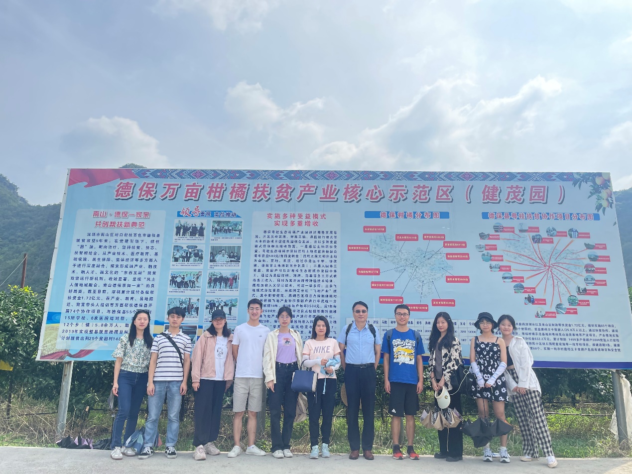 为深入学习贯彻习近平新时代中国特色社会主义思想,贯彻落实习近平总书记关于青年工作的重要思想,切实落实立德树人根本任务,努力成为担当民族复兴大任的时代新人,以实际行动庆祝中国共产党成立100周年,7月11日,深圳大学管理学院金元吉、梁雨晴两位老师带领7名硕士研究生和3名本科生,组建了一支“桂梦之队”志愿团来到广西壮族自治区百色市,开展为期7天的短期支教活动,同时铺开对学生和家长的家访工作,了解易地搬迁贫困家庭的生活状况,并向当地讲述党和政府的扶贫政策和乡村振兴战略。在完成支教活动和家访工作后,桂梦之队前往扶贫基地柑橘园及百色起义纪念馆、粤东会馆参观学习。