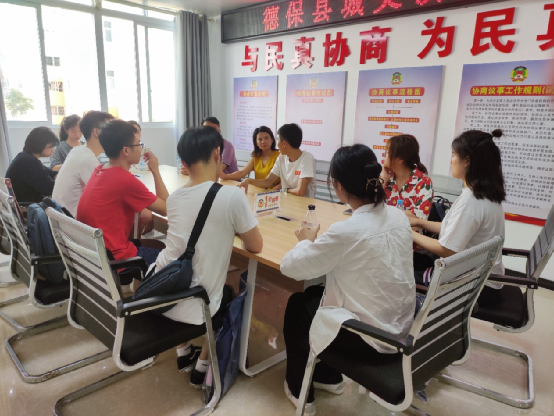 7月15日下午,“桂梦之队”在罗艳校长带领下来到了德福社区。德福社区是德保县最大的易地扶贫搬迁贫困户安置点,南山小学的孩子大多数就是住在这里。社区设置34个居民小组,共有2311户10231人。社区人员众多,家庭庞大,如何有效治理社区,完善社区服务,让搬迁户住的放心是一大管理难题,社区党委书记兼居民委主任韦佳奇热情地向我们介绍了社区独特的管理模式。