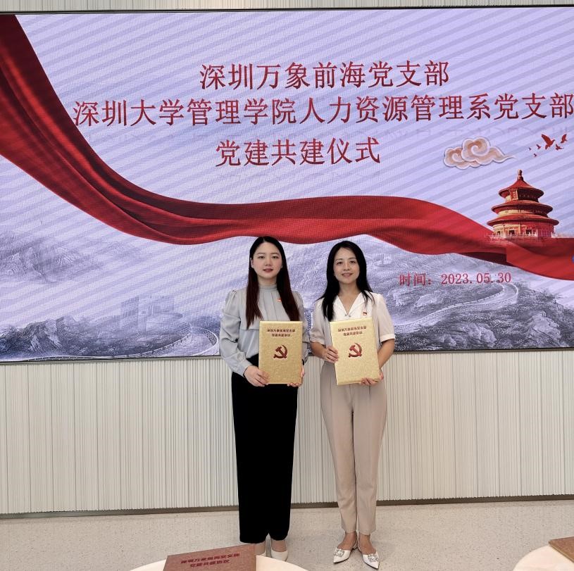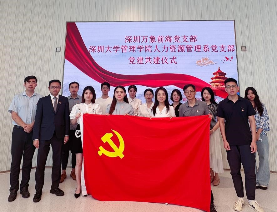 为深入推进学习贯彻习近平新时代中国特色社会主义思想主题教育,管理学院人力资源管理系教师党支部书记丁婉玲同志于5月30日携该支部教师党员代表王军同志、张琦同志及人力资源管理系部分本科生党员代表,前往华润置地前海有限公司参加校企支部党建共建签约仪式。