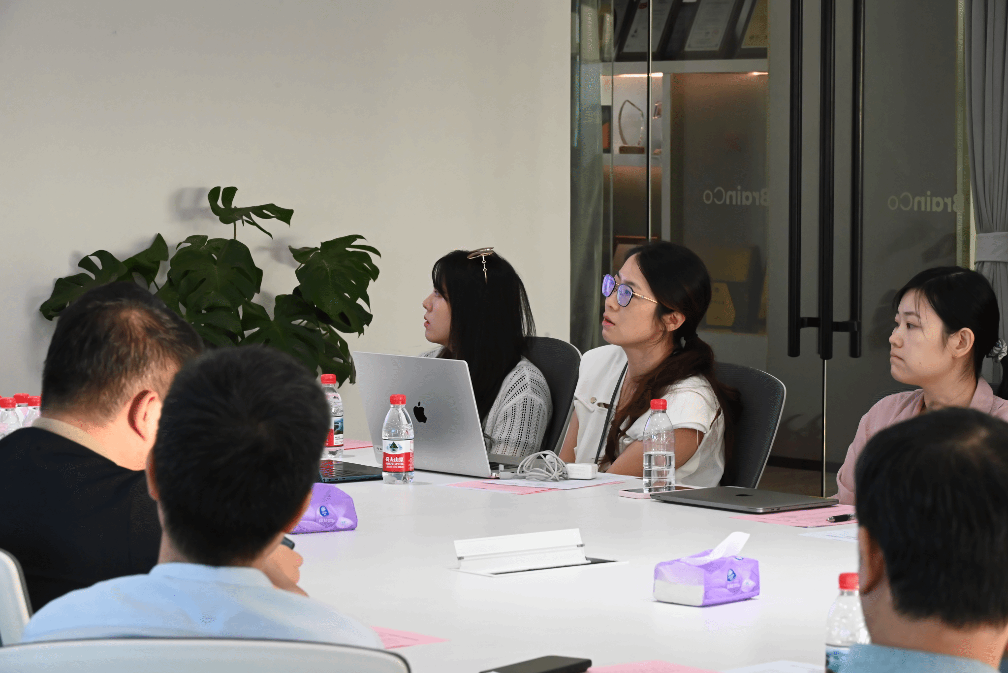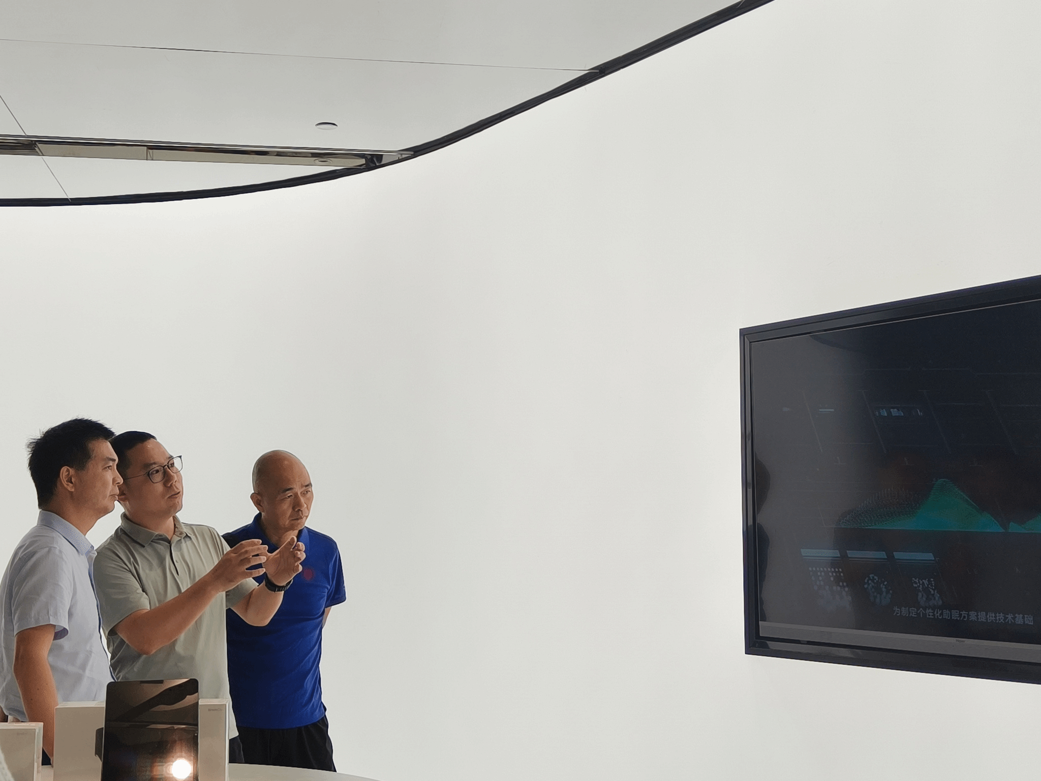 在参访过程中,强脑科技公司副总裁程交先生对大家的到访致以热烈的欢迎,邀请参会人员前往企业展厅身临其境地体验强脑科技公司的全线脑机产品。首先,强脑科技公司的成员以非常特别的方式向参访团队展示智能仿生领域的脑机产品,由受益于公司仿生产品的残疾人员工穿戴智能仿生手来向大家展示产品的独特之处。大家尝试与穿戴仿生手的员工进行“握手”互动,在现场欣赏了残疾人士借助仿生手的帮助成功弹奏了钢琴曲,深刻感受到脑机接口技术正在从科幻走向现实。其次,参访团队了解了公司在智能康复领域的脑机产品。开心果脑机接口社交沟通训练系统基于社交脑网络算法的理论支持,帮助孤独症谱系儿童通过社交脑网络神经反馈训练提升社交、语言和思维能力。而专注欣产品主要侧重儿童脑机接口注意力训练,主要的核心优势包括:个性化训练、多维有趣、适当激励、效果可追踪。最后,参访团队成员体验试戴了FocusZen正念舒压智能脑环,详细了解其在电子消费品领域的脑机产品,通过实时的动态数据可以具体了解使用者的压力或焦虑情况,同时可以通过配套的冥想课程来舒缓调节。这种“正念+科技”的结合,不仅提升了冥想效率,还能帮助人们逐渐掌握大脑状态的自我调控技巧,真正做到“身心合一,念随心转”。