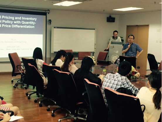 2015年5月19日星期二下午,来自香港城市大学的陆晔教授做客“深大管理学院管理科学前沿论坛”。陆晔博士本科毕业于清华大学,并获得麻省理工学院运筹学博士学位和圣母大学数学博士学位。本次讲座在文科楼院办1400会议室举行,讲座题目为《基于数量的价格差异的动态最优定价和库存策略研究》。管理学院管理科学系马利军副教授主持了讲座,学院部分教师、研究生及“供应链管理前沿问题探讨”科研短课的部分学生听取了本次讲座。