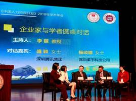 在学者-企业家的圆桌会议上,17日上午四位学者和企业家紧跟管理理论的研究前沿,结合现代企业的发展,深刻剖析了人力资源管理的新发展,引起在场参会者们的深入思考。18日上午学者与企业家进行理论和实践的碰撞与交流,双方围绕AI走进企业及相应措施、新加坡人才培养体系对中国的借鉴意义等方面展开深入讨论,企业家与学者圆桌对话给与会嘉宾带来了一场视听盛宴。