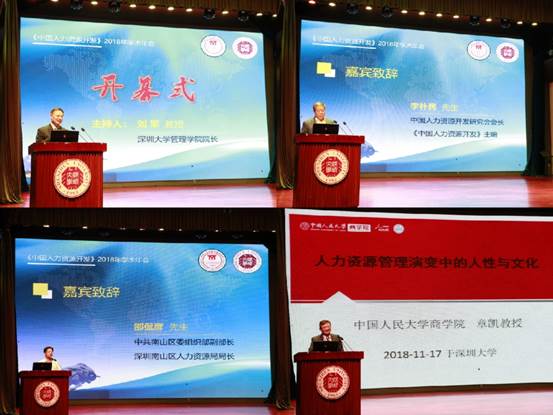 2018年11月17-18日,中国人力资源开发2018年度学术年会在深圳大学管理学院举行。本次会议由中国人力资源开发研究会、深圳大学联合主办,深圳大学管理学院、《中国人力资源开发》杂志和深圳高层次人才研究院承办。来自中国人民大学、中国科学技术大学、香港中文大学、新加坡国立大学、台湾高雄大学武汉大学、华南理工大学等国内外百余所高等院校的400多名专家学者,与来自于腾讯、柔宇科技、TCL等国内知名企业的多名企业家共同参加了这一年度的盛会。