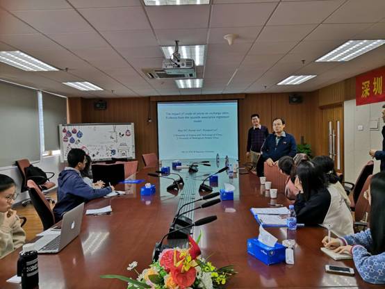 本次讲座在文科楼管理学院1400会议室举行,讲座题目为《The impact ofcrude oil prices on exchange rates: Evidence from the quantile associationregression model》。管理学院管理科学系副系主任马利军教授主持了此次会议,到场的老师有熊轶老师、林美燕老师、钱小虎老师、黄秋萍老师等,不少博士生、研究生及本科学生也积极参与了本次会议。