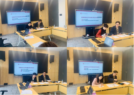 会上首先进行了管理学院交叉学科团队研究项目的签约仪式,该项目受资助对象为我院教师所组建的交叉学科团队,旨在促进我院一级学科教师积极开展学科间的合作研究,孵化更多高质量的科研成果,提升学院的学术科研氛围和教师科研水平。2021年,我院共对四个交叉学科研究团队项目进行了资助,分别为:冯元粤/杨翩翩团队、初大智/耿爽团队、马晶/林美燕/张沛昌团队、陈蕊/豆国威团队。