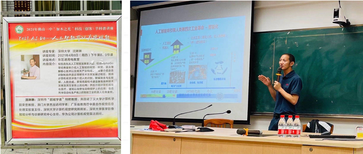 2021年4月8日下午,我校“名师进中学”活动走进佛山市第一中学。管理学院党委书记何军老师、计算机与软件学院沈琳琳老师、管理学院人力资源管理系副系主任丁婉玲老师受邀走进佛山市第一中学,为佛山一中优秀学子带来了人工智能科技知识讲座及深圳大学招生宣传讲座。