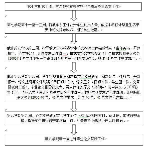 注释二、[2006]40号、[2006]41号文件请到学院网或校园网“深大主页—教务信息—办事指南—表格下载—学生适用—应届毕业生工作—毕业论文(设计)工作——1.本科生毕业论文(设计)工作规定([2006]40号)、2.本科生毕业论文(设计)撰写规范及要求([2006]41号)”上查阅。