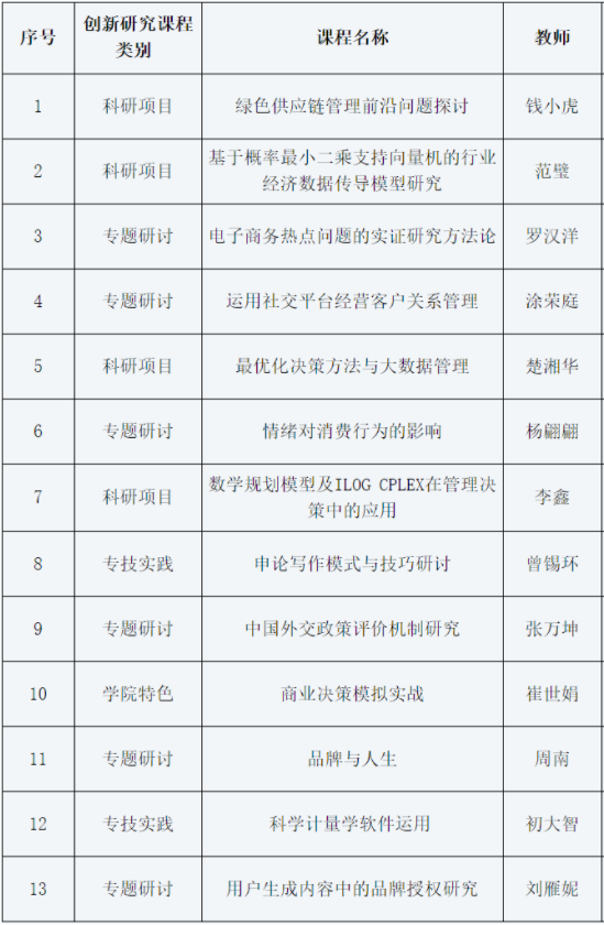 本学期管理学院共开设了13门“创新研究短课”,具体信息如下表,欢迎大家积极选修!