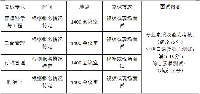 各专业(领域)成立由研究生导师组成的推免生复试小组,复试小组在学院(部)推免生工作领导小组的领导下开展复试工作,负责确定复试的具体内容、评分标准、程序。复试的具体内容和方式由各专业的人才培养目标、专业特点和情况确定,报研究生招生办公室备案并在学院网站公布。如安排专业素质及能力面试,做好面试现场记录。各硕士点可以视情况分批次安排复试、面试方式可以采取现场面试或视频面试。按时间顺序优先原则,若第一批录取指标已满,则不再接受推免生报名面试。