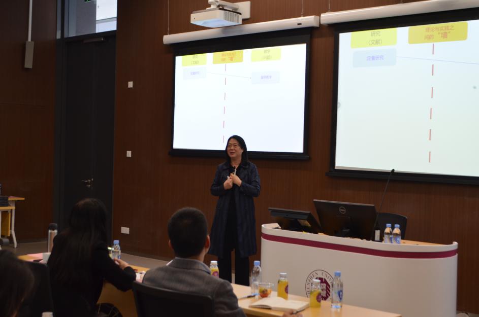 暨南大学王玮教授应邀做主题报告《案例开发:打通教学与研究的闭环》。王玮教授因教学与案例结缘,从教案例到写案例,从教学型案例到研究型案例,再从案例开发到多种研究,成果突出。王玮教授强调,案例可以有效解决研究(文献)与教学(问题)之间的矛盾,打通两者之间的“墙”。王玮教授用自身的实践(从定量研究到案例教学,再到案例研究、质性研究及行动研究)展示了如何用案例开发打通教学与研究的闭环。对案例开发中遇到的问题,王玮教授与参会老师进行深度研讨和交流,分享经验,提出建议。与会老师均感报告启发性强,受益良多。