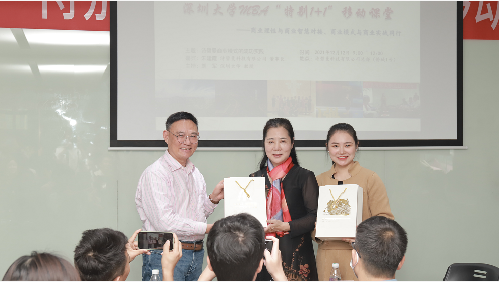 2021年12月12日上午,刘军教授带领MBA2020级创新创业班58名同学来到位于侨城1号广场的诗碧曼科技有限公司总部,给同学们上了一堂生动的商业模式实践课,本次课程的主题是“商业理性与商业智慧对接、商业模式与商业实战同行”。