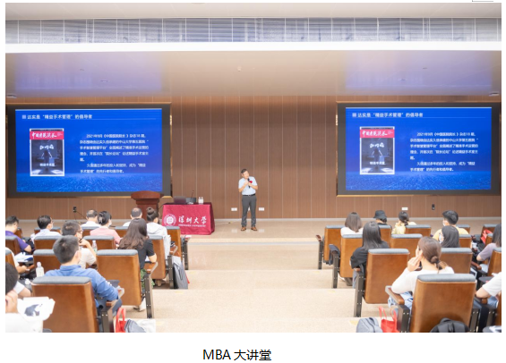 开学典礼仪式结束后,深圳大学管理学院特约教授、深圳达实智能股份有限公司董事长刘磅应邀作主题为“人生成长与企业创新之道”的专题报告(MBA大讲堂(第103讲))。刘总结合自身创业历程,为新生们介绍了达实智能公司的发展历程和经营现状,讲解了企业战略创新模型、管理方略和个人体悟。报告内容丰富,问答互动精彩,学生们获得很大启发。大讲堂在新生热烈的掌声中圆满结束。