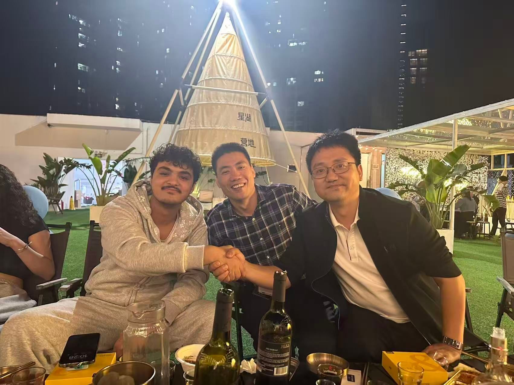 晚宴尾声,外国友人的加入更添国际范儿!同学们主动上前交流,围绕商务合作、文化差异、行业趋势畅聊。从职场经验到文化碰撞,在轻松对话中拓宽视野,锻炼语言能力,更收获了跨越国界的珍贵友谊。