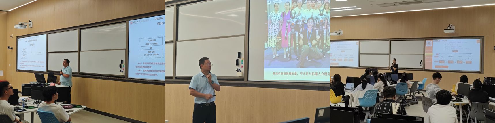 马利军教授将网络效应、网红竞争博弈与品牌协同策略纳入统一分析框架,揭示了数字生态中粉丝经济价值最大化的动态机制,为内容创作者与商业品牌提供了颠覆性的运营方法论。崔世娟教授从深圳发展的历史讲起,以深圳企业为例,向同学讲解企业成长过程中面临的管理问题,并引导同学们以具体的事件共同剖析企业背后不同的盈利模式,最后总结出适于企业的营销战略和商业逻辑,为同学生动地讲解了战略管理的核心理论及典型案例。冯元粤副教授分享了信息系统领域游戏化设计的相关研究,着重阐述游戏化设计的核心理念、理论热点以及实践前沿,并结合实例分析游戏化设计在直播电商、智能客服、产品众筹等领域的效用。