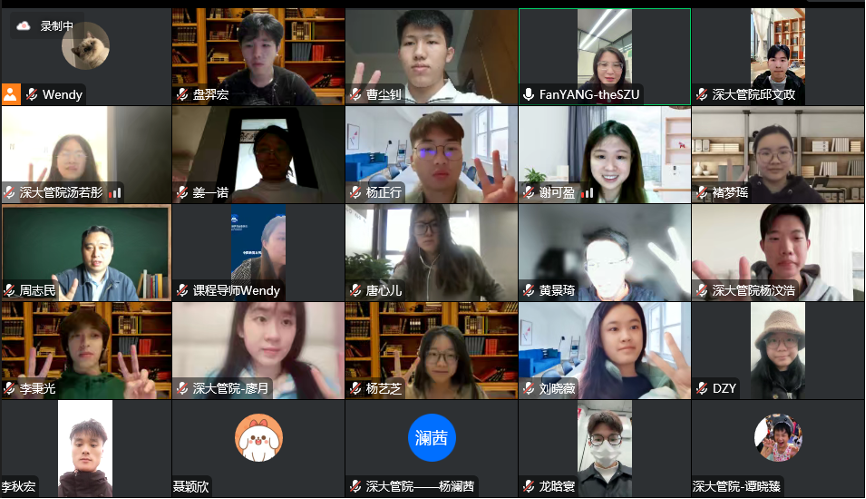 本次的参会人员为深圳大学管理学院周志民副院长、负责外事的杨帆老师、中国教育发展战略学会国际胜任力培养课程组负责人兼集思未来高等研究院秘书长王筱稚老师、班主任牛雯茜老师以及25名项目生。