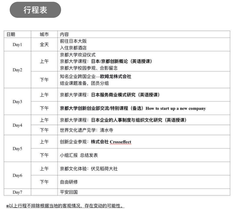 此项目旨在通过精心设计的课程内容和丰富的实践活动,让学生亲身体验京都大学卓越的学术环境,深入探索商业创新与创业领域的最新趋势,从而拓宽国际视野,激发创新思维,并构建宝贵的国际人脉资源。