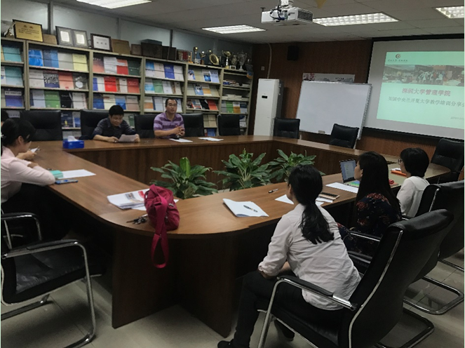 2019年3月29日在管理学院资料室举行了第三次国际教育教学研讨会。本次会议由管理学院分管外事工作副院长潘燕春教授主持,参加本次研讨会的是全英课程任课老师们。潘燕春副院长首先提出此次开会的意义,主要是1月份赴英国兰开夏大学教学培训的老师们与其他全英课程授课老师的教学体会分享,旨在提高教学水平和教学质量。