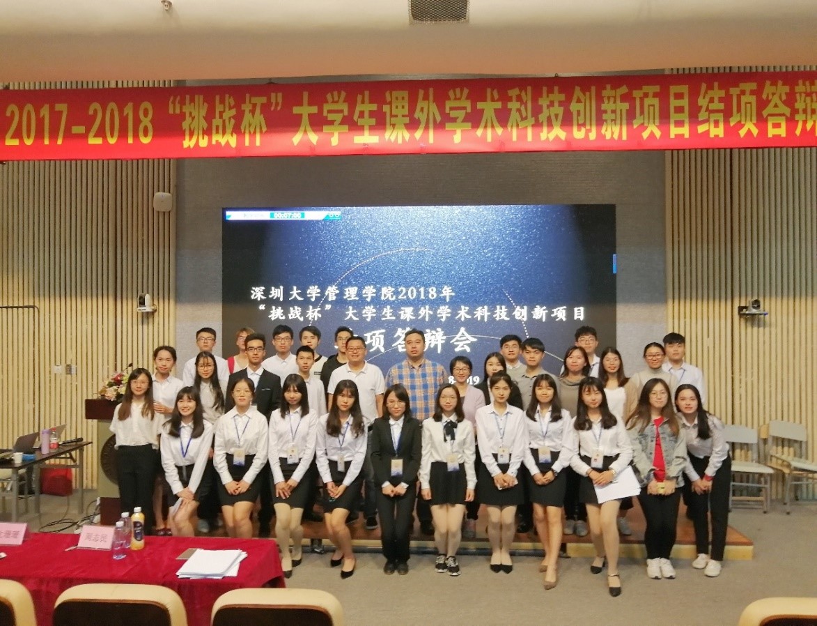 深圳大学管理学院2017-2018年度“挑战杯”大学生课外学术科技作品竞赛结项答辩会于11月29日、11月30日晚在科技楼三号报告厅顺利举行。出席并担任本次结项答辩会的评委有来自管理学院的周志民教授、邹树彬副教授、文姗姗老师、耿旭老师、林美燕老师。