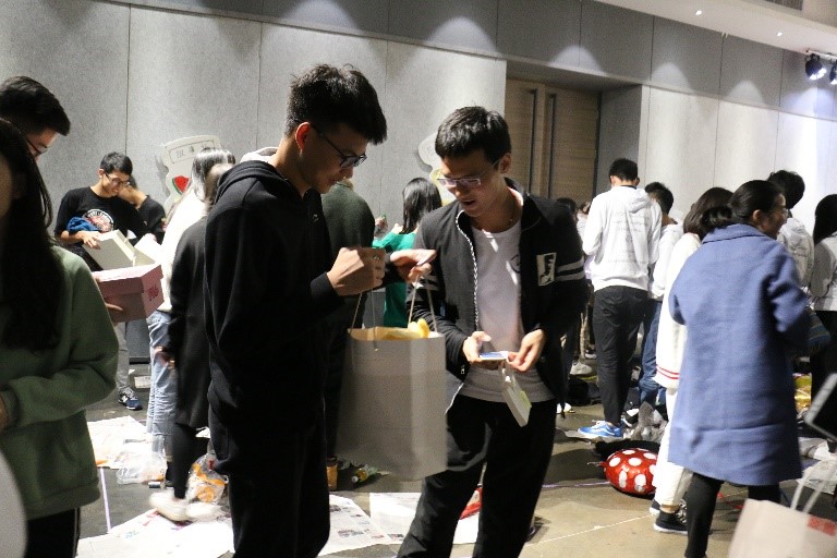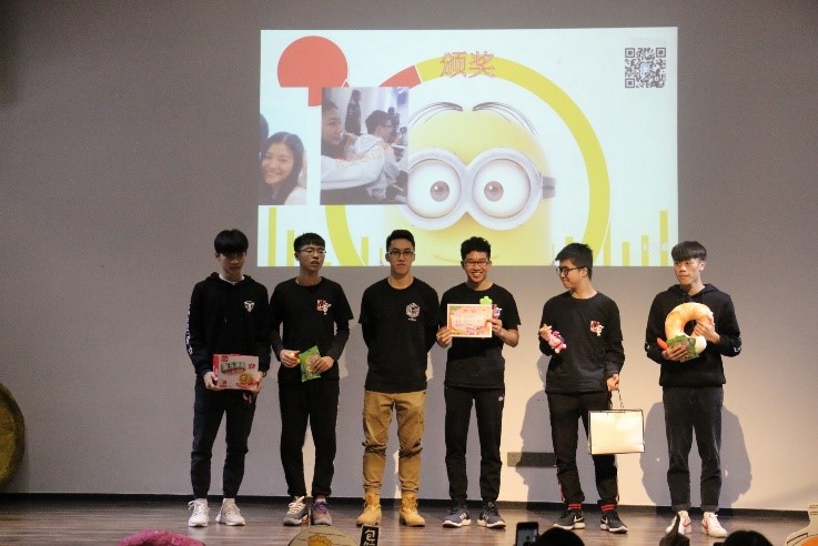 随后是根据游戏总积分结果进行的大惩罚以及颁奖环节。总积分第四名的社会实践部队伍接受了包括用脸撑破保鲜膜框、指压板跳绳以及食用黑暗吐司的终极大惩罚。在引得大家欢笑不断的大惩罚之后,四支队伍一起在书记手中接过了各自的奖项。