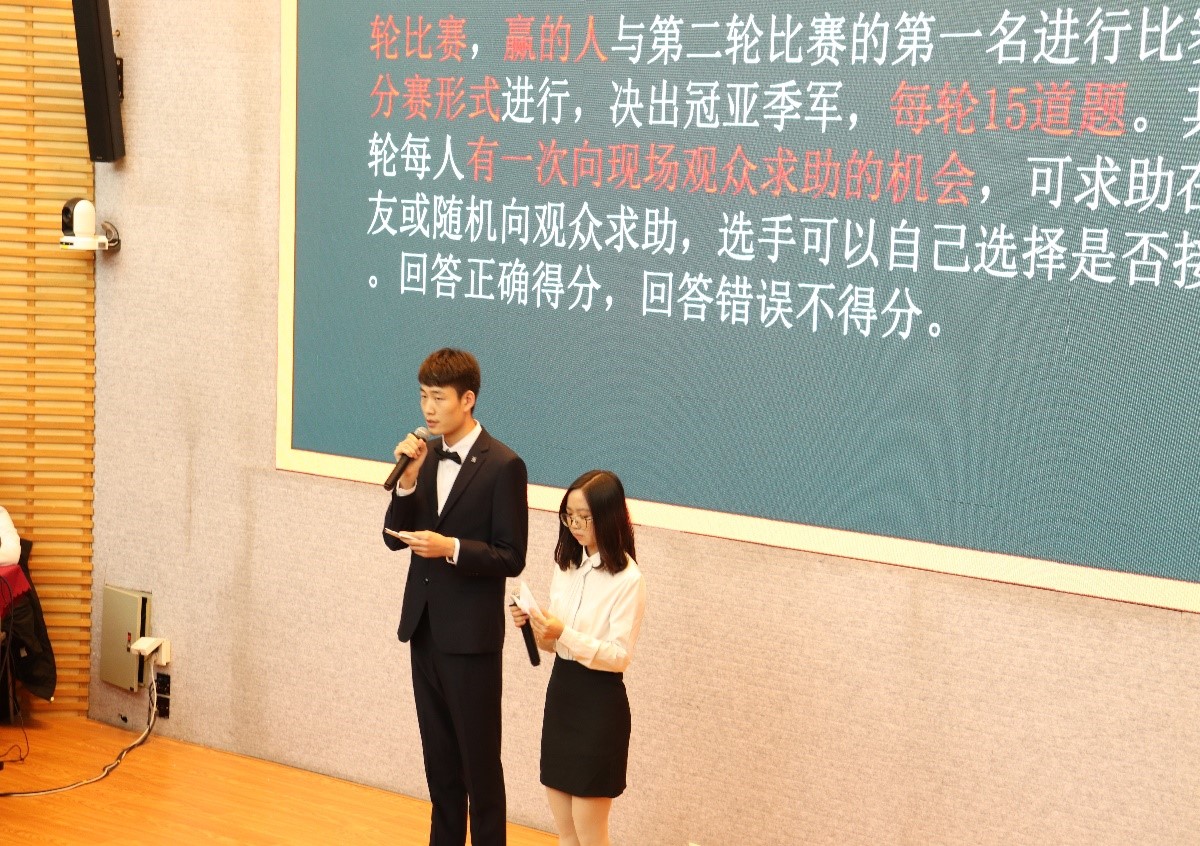 首先,主持人介绍本次知识竞赛。主持人简单介绍赛制与流程,让选手和观众更加清晰地了解了比赛。接着,主持人宣布本次比赛正式开始。