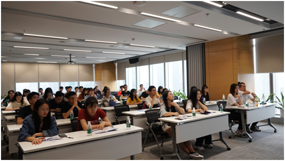 讲座中场休息时间,国信工作人员组织活动参与人员参观了国信证券股份有限公司深圳泰九分公司的工作场所。休息结束后,活动进入互动环节,活动参与人员积极提出自己对职业规划的疑惑,国信工作人员也积极回答学生们的问题。
