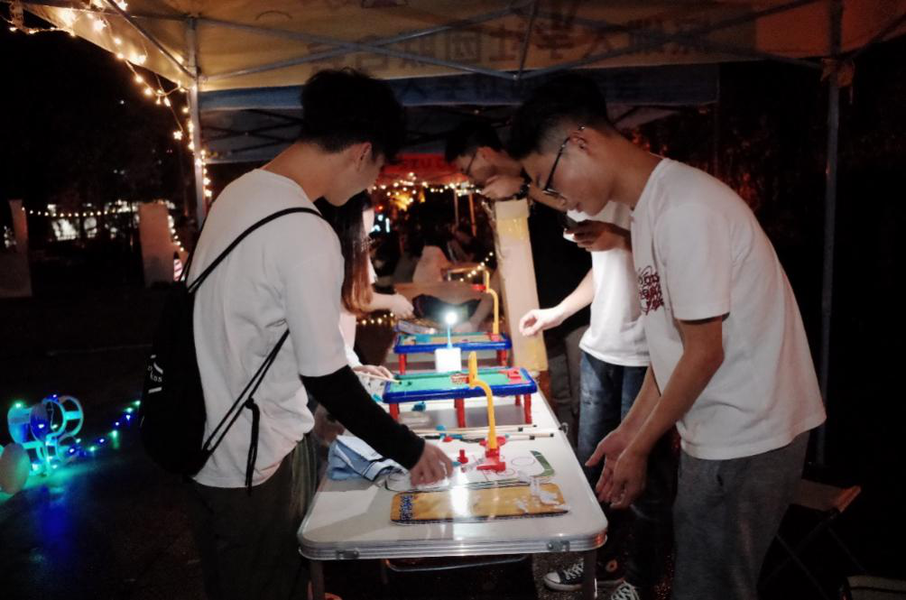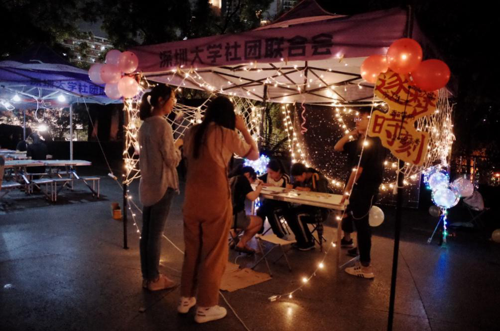 广播站中激情四射的音乐响起,参赛者们挤在一起使劲回忆歌词的样子像极了上课认真思考的学生,每个人都想快人一步想出答案获得比赛积分,小游戏的竞争性和趣味性十足,吸引了许多深大小伙伴驻足参与。