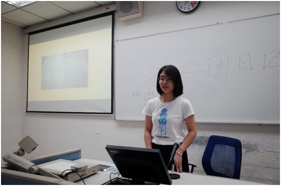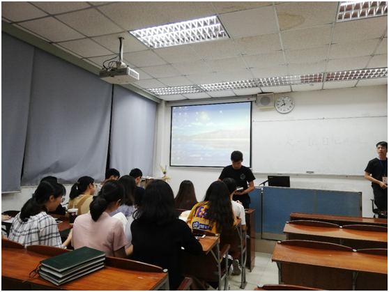 接着主持人开场,活动正式开始。每班团支书用ppt依次上台展示自己班级的团日记。团支书们用图文结合的方式展示了自己班团日记的特色,17级市营一班以童年记忆为主题展开的团日记生动活泼,18级工商2班的团日记虽只是文字传意,但情感已然溢出文字。