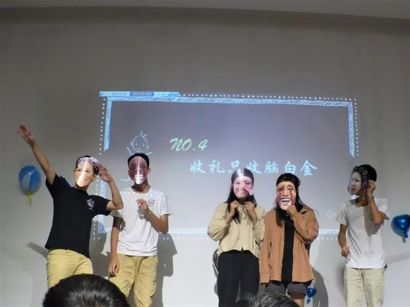 在讨论之余,我们也进行了轻松有趣的小游戏。在轻松愉快的气氛中,大家吃着小零食,看着台上小伙伴们诙谐的动作和表演,不由得哈哈大笑。获得胜利的队伍可以获得线索,而落败的队伍就要接受各种惩罚,比如味觉挑战,比如戴上搞怪面具。