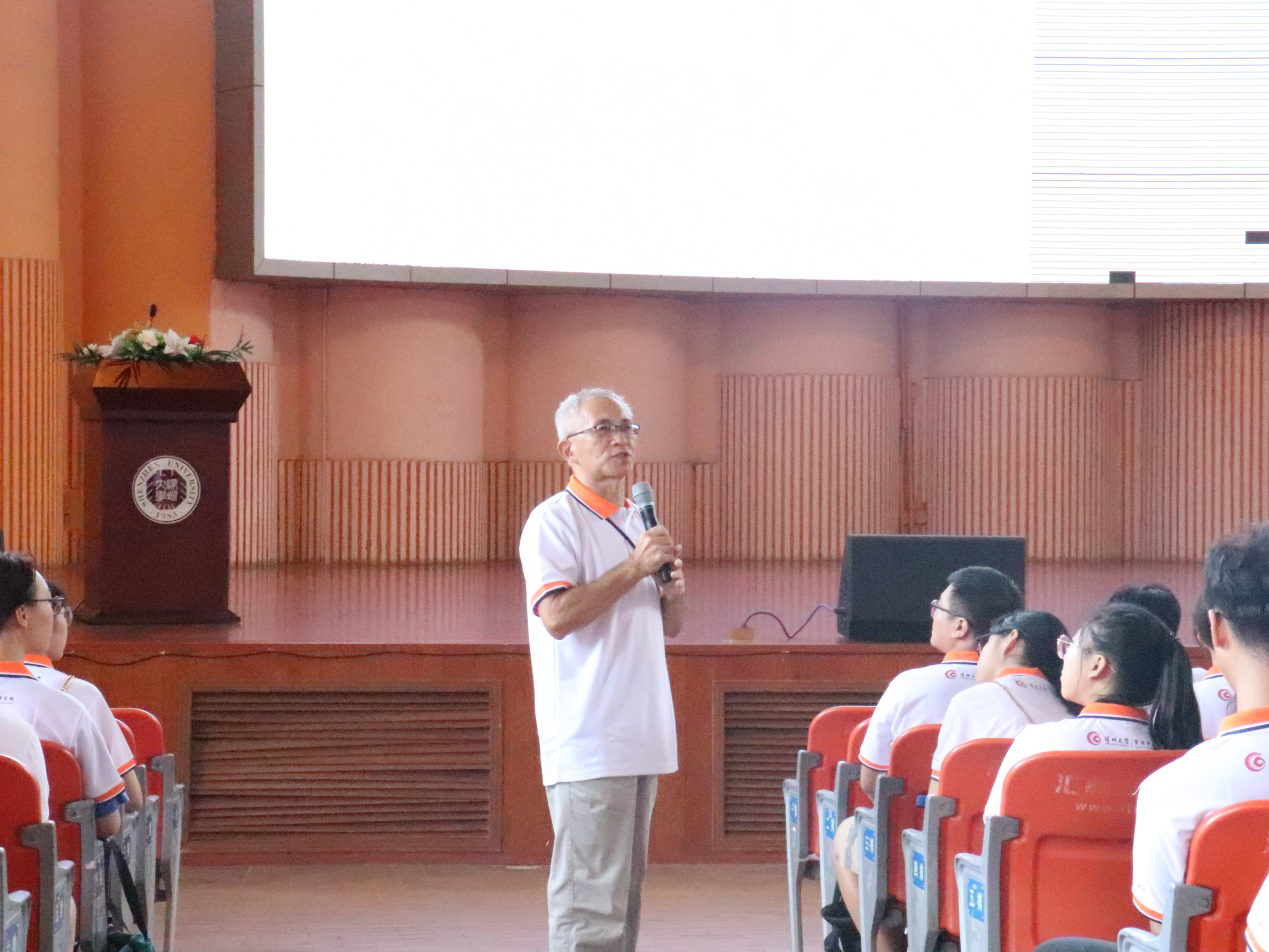 接下来,周南教授与新生们建立起同学关系,向同学们提出了“PASS(physical、academic、social、spiritual)”概念,周南教授通过对这一单词的解读告诉同学们作为一名大学生应以学习为主,同时也要多参加各种活动,主动社交,注重德智体全面发展,敢于试错,提升自身毅力。