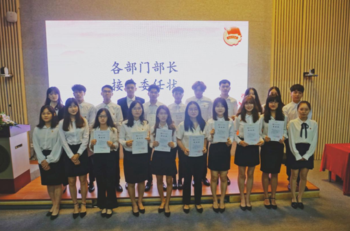 紧接着,六大部门部长以及九大社团社长上台接受委任状颁发,最后是各部门部长分别为新任干事颁发委任状。
