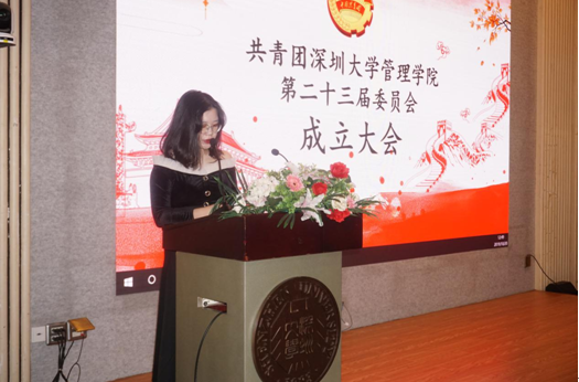 随着新学年的正式开始,管理学院团委招收了一批优秀的新成员,为管理学院团委注入了新的活力。2019年10月20号下午,共青团深圳大学管理学院第二十三届委员会成立大会在科技楼三号报告厅举行。管理学院团委书记孙思老师出席了本次大会。在主持人的主持下,大会有序进行。