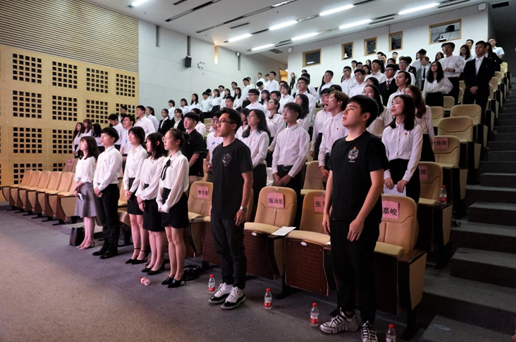 随后进行团歌的播放,全体人员合唱团歌。参加大会的师生全体肃立,高唱团歌。