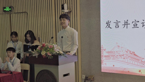 接下来是第二十三届团委副书记郑旭钊同学讲话。郑旭钊同学的讲话让我们对未来充满了期待。“守底线”、“讲规矩”、“抓细节”、“听指挥”、“懂礼貌”这十五个字是我们未来的努力方向。同时他也希望我们在未来团委的工作中能有严谨的工作态度并对自己有着高要求。在讲话最后,郑旭钊同学祝愿大家能够在团委这个大家庭里收获友情,同时有能力上的提升。