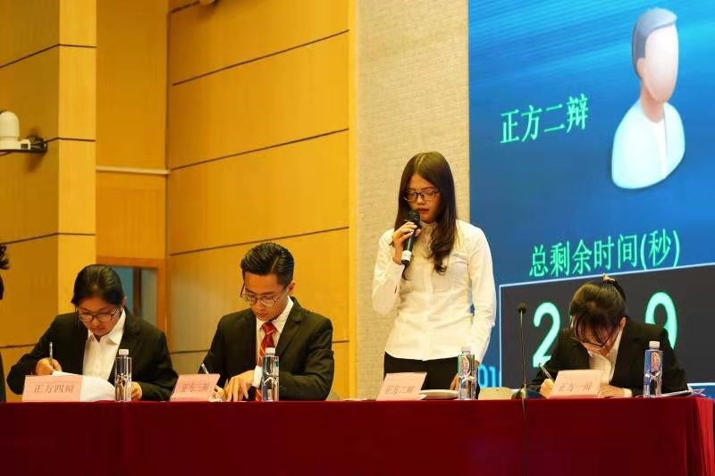 在自由辩论环节中,双方选手就辩题展开了更深层次的辩论,将比赛推向高潮。在评委提问环节中,选手们更使出浑身解数,尽可能给出最清晰且严谨的答案。