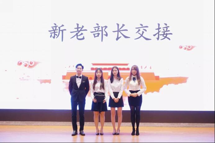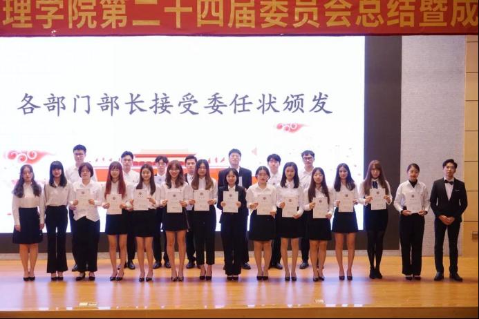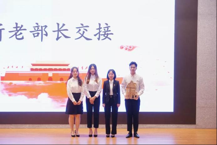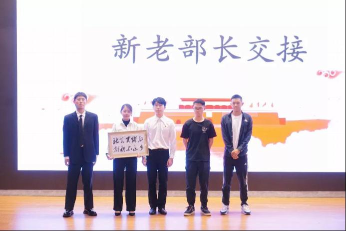 管理学院第二十三、第二十四届各部门部长依次上台进行信物交接。