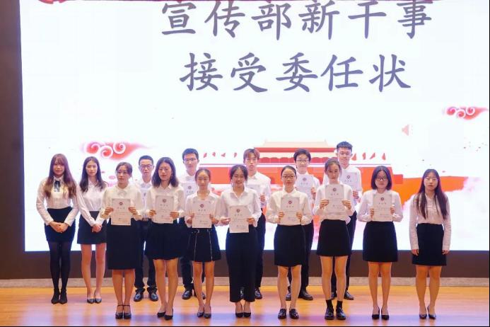 随后,大会播放了各部门视频。经各部门部长发表讲话后,各部门新干事接受委任状