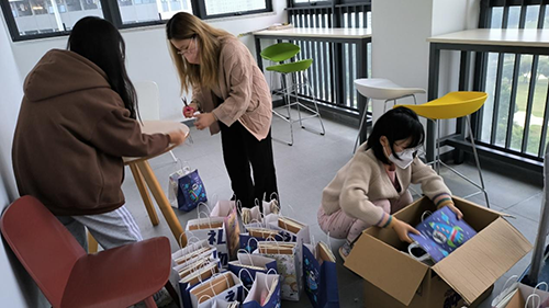 另外,干事们将爱心存放在给孩子们的礼物里,和写着祝福的明信片一同寄出。