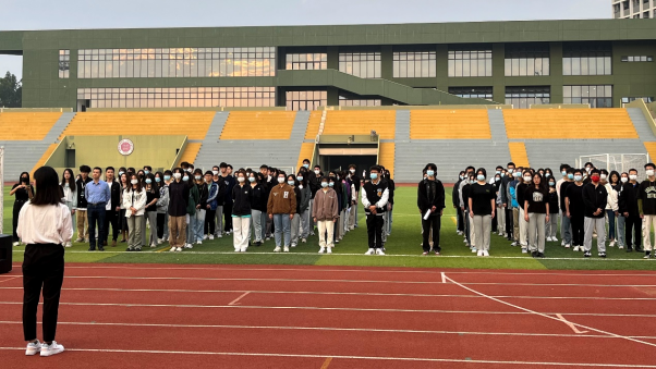 3月10日,管理学院在至快体育场举行新学期主题党(团)日教育活动。学院党委书记何军老师、团委书记马大鹏老师、2022级辅导员孙思老师及2022级本科生共200余人参加本次活动。