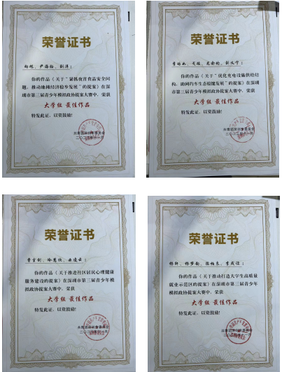 由共青团南山区委员会主办的“青春有我,提案南山”2023年南山区青少年模拟政协提案大赛以及由共青团深圳市委员会主办的深圳市第三届青少年模拟政协提案大赛于2023年7月起先后开展。管理学院同学积极报名参加,经过前期的学习、调研、培训以及提案撰写,学院共有8支队伍入围,其中4支队伍荣获佳绩,市赛中,我校更是斩获全市最佳作品的五分之四。