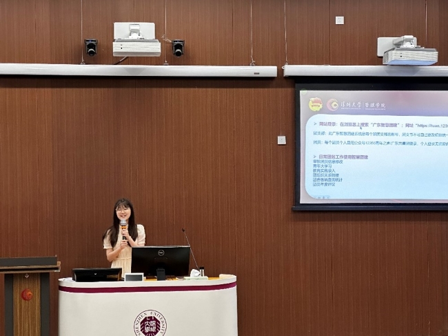 随后,团委组织部杨雨帆同学向团支书们介绍广东智慧团建系统及其主要功能模块。通过杨雨帆同学的讲解,团支书们不仅了解了广东智慧团建系统的详细功能,也学会了如何运用系统开展团务工作,提升了系统操作效率。