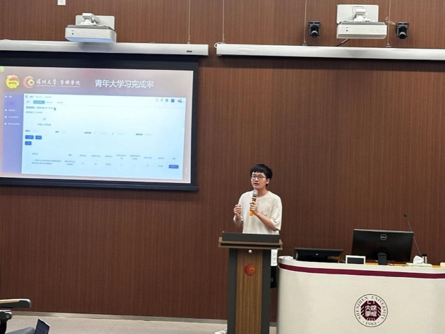 紧接着,团委组织部陈豫同学围绕团支书日常基本团务工作进行了经验分享。在他的细致讲解下,团支书们对团务工作中的具体流程和微小细节有了更深入的理解, 有效提高了团支书的工作能力和工作效率,为接下来更好地开展团务工作奠定了基础。