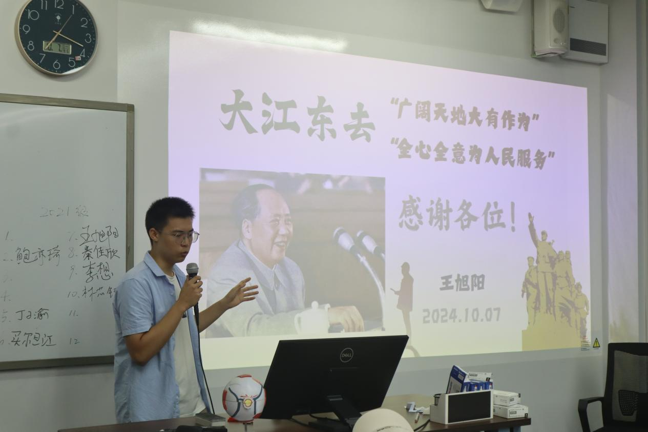 随后,2021级各班代表率先进行精彩展示,他们昂首挺胸,从容不迫。其中2021级工商管理02班的王旭阳同学说明了他的个人概况,体现了他强大的学习能力和学生关怀,同时详细讲解他在担任学习委员时直击痛点,通过宣讲会、高数帮扶计划帮助同学们解决就业学习问题,展现了“广阔天地大有为”的雄心和“全心全意为人民服务”的责任心。