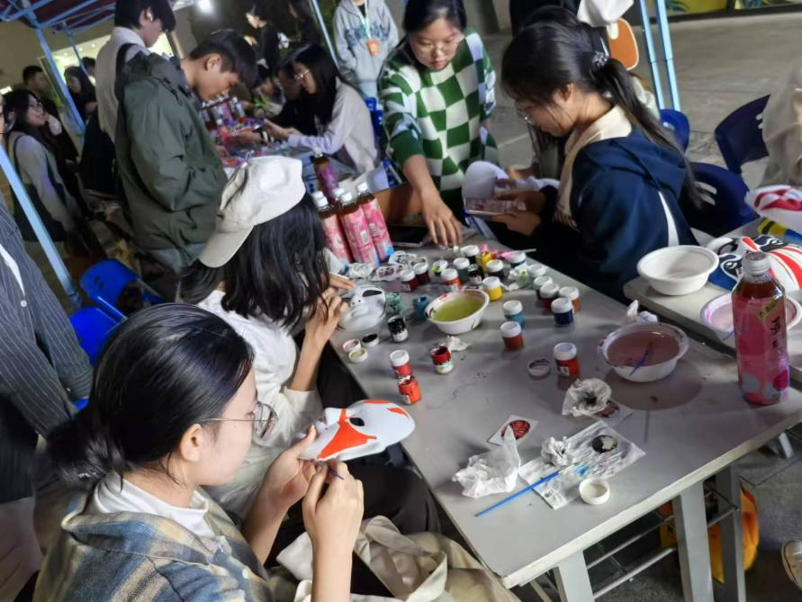 在“手工体验”主题摊位中,设有“画脸谱”“沙漠浪漫”“送你一朵小红花”等多姿多彩的摊位。同学们在手工制作过程中再次体验到快节奏时代少有的、轻松惬意的慢生活。拾起画笔,揉起彩砂,同学们的压力得以释放,大脑得以放空,身心得以放松,培养了耐心,陶冶了情操。