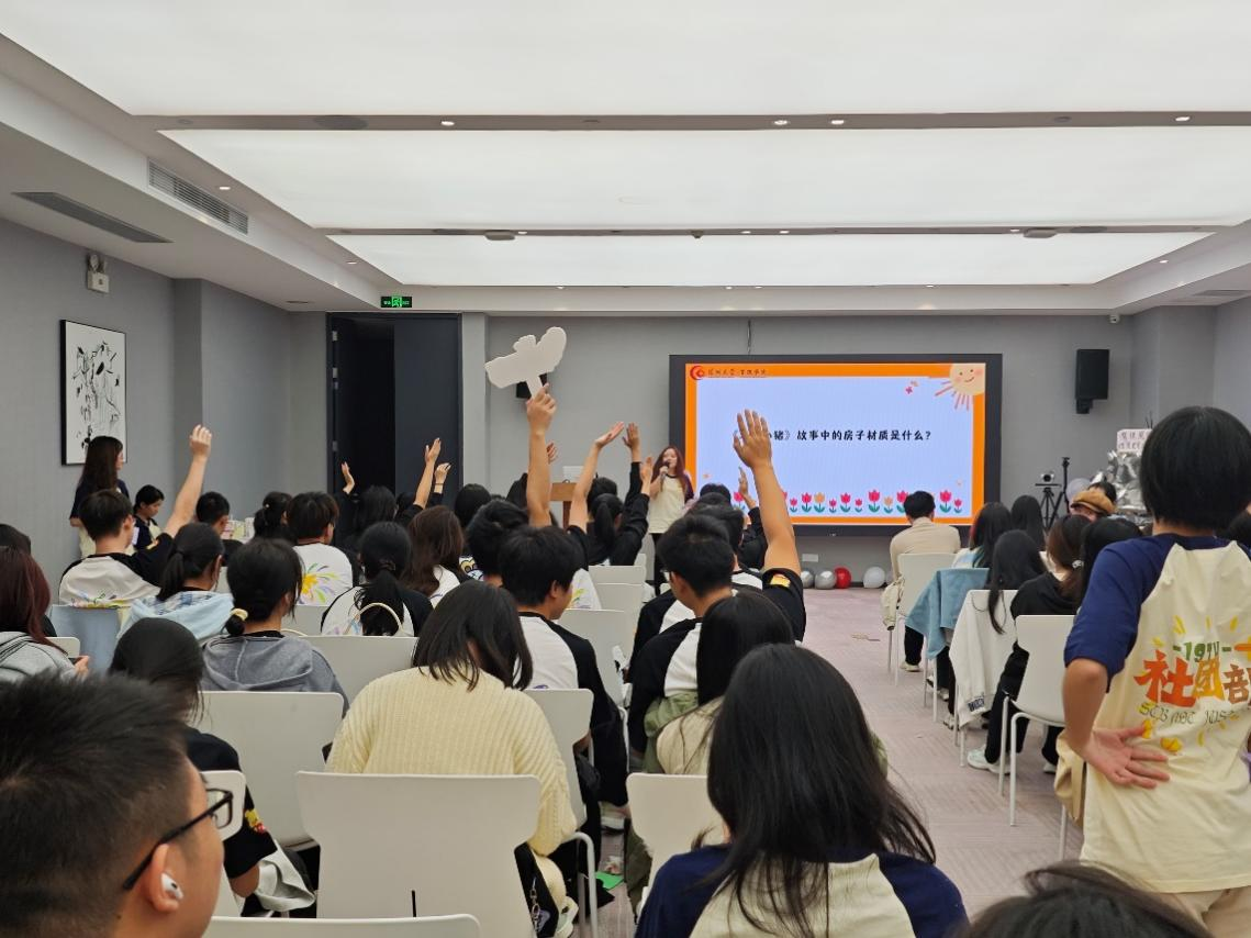 随后,是社团部、总务处这两个部门的表演和“童话百科问答”小游戏环节。现场氛围更是进一步走向高潮。