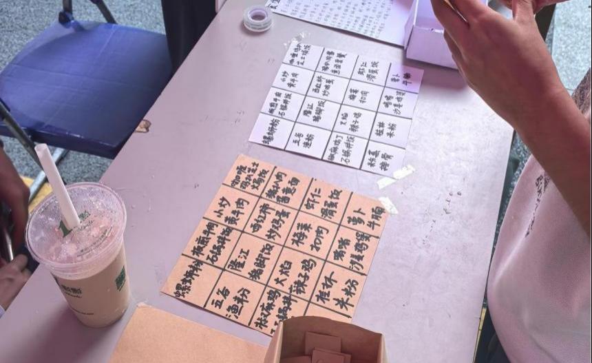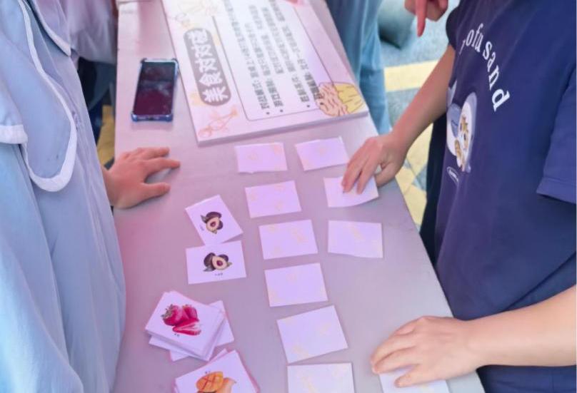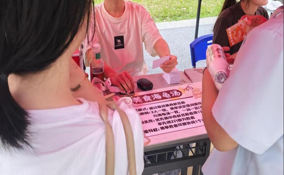 “美食飞花令”展位也同样精彩纷呈,参与者猜拳以轮流回答,根据抽到的主题依次说出相关食物名称,富有互动性和挑战性。“美食海龟汤”环节将食材与海龟汤玩法创新融合,新颖形式引发同学们浓厚兴趣。