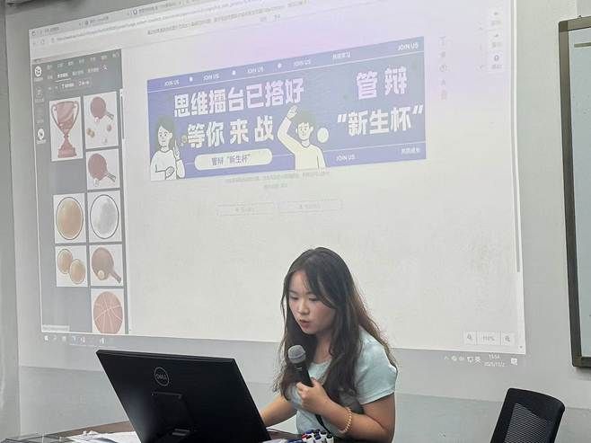 短暂的中场休息过后,由社团部部长阳媛媛同学为干事们进行第二轮的宣讲。她系统讲解了秀米和可画平台的使用方法,包括秀米和可画平台的模板应用、文字排版技巧和推文封面制作,同时,她建议干事们综合运用两个平台以提高推文制作的质量与效果。阳媛媛同学的经验分享丰富了干事们对推文制作的认识与了解,帮助干事们掌握秀米和可画的操作与应用。宣讲结束后,参会干事纷纷表示,将在后续工作中积极运用所学技能,切实将培训成果转化为实践行动。